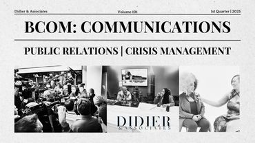 Elevate your brand’s voice with Didier & Associates BCom: Communications À La Carte—your trusted partner in strategic messaging and public relations. From press release creation and distribution to press kit development, biography crafting, content creation, and crisis management, we offer tailored solutions to amplify your presence and protect your reputation. Our expert coaching sessions empower you with the tools and confidence to communicate effectively in any situation. By choosing Didier & Associates as your strategic communications advisor, you gain access to industry expertise, personalized strategies, and a proactive approach that ensures your message resonates with the right audience. Let us help you craft compelling narratives and maintain a strong, credible brand. Your success starts with clear, impactful communication—partner with us today!